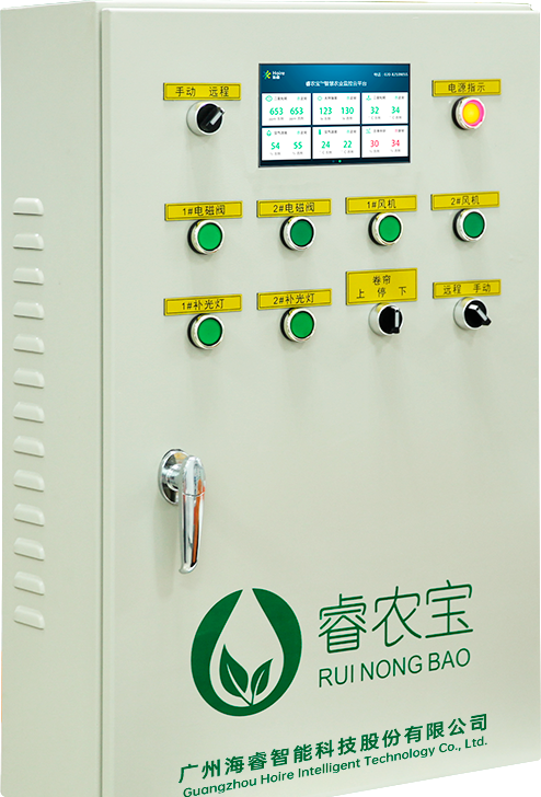 智能電氣控制柜可用于對設(shè)施農(nóng)業(yè)內(nèi)的各種設(shè)備進(jìn)行集中管理,包括風(fēng)機(jī)、卷簾機(jī)、日光燈、灌溉器等。控制柜內(nèi)置GPRS模塊,可與云服務(wù)器相連,通過“睿農(nóng)寶”APP可以各個獨立的設(shè)備進(jìn)行遠(yuǎn)程控制。