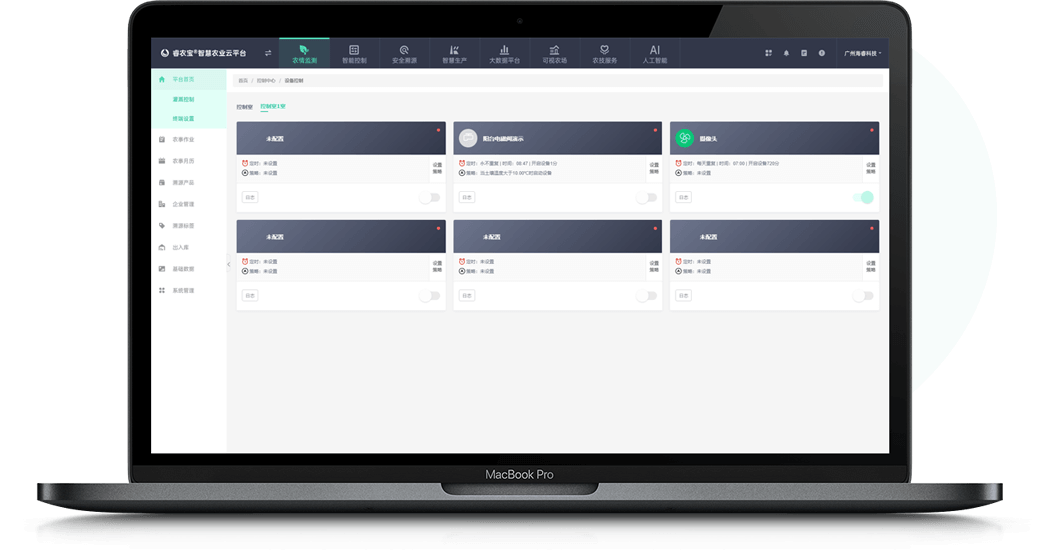 通過睿農(nóng)寶APP,可以對設(shè)備進(jìn)行遠(yuǎn)程控制。同時還可以通過APP設(shè)置智能控制策略,可以實現(xiàn)定時、定點的控制設(shè)備。結(jié)合“睿農(nóng)寶”環(huán)境監(jiān)測設(shè)備,還可以根據(jù)現(xiàn)場環(huán)境情況進(jìn)行智能控制。例如當(dāng)溫度過高時打開風(fēng)機(jī),當(dāng)光照不足時打開日光燈等,實現(xiàn)自動化生產(chǎn)管理。