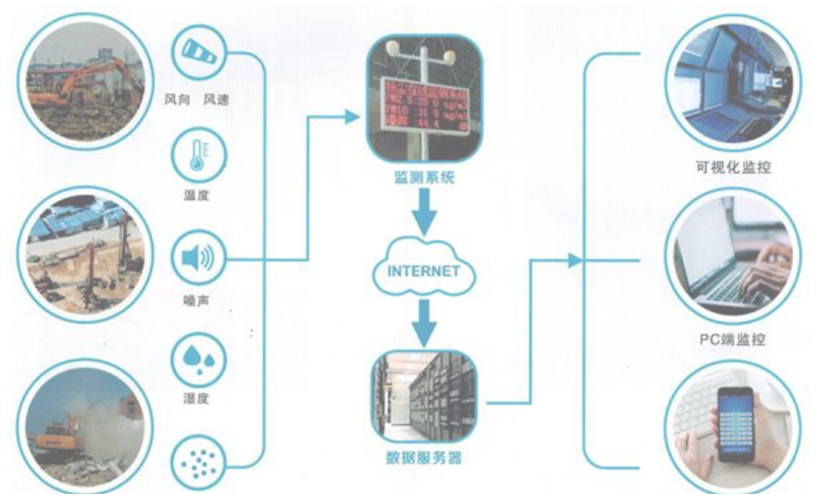建筑工地揚塵監測控制系統,針對建筑工地的除塵降噪問題,實現污染問題在線監測、管理一體化。能夠遠程實時采集工地的揚塵污染和噪音污染數據,通過物聯網系統,配置噴淋系統和霧炮設備聯動,當懸浮顆粒物到達一定濃度的時候,自動開啟聯動設備進行降噪或降溫,能夠同時兼顧節能和環保,用戶可通過手機或電腦隨時查看現場實時的環境情況,并接受收到報警信息推送。系統集數據采集、傳輸、多維數據展示與應用為一體,滿足新形式下揚塵的環境監測、污染防治和科學決策需求,實現揚塵監管全面信息化,為環保、城建等監管部門聯合執法提供數字化的監管手段。